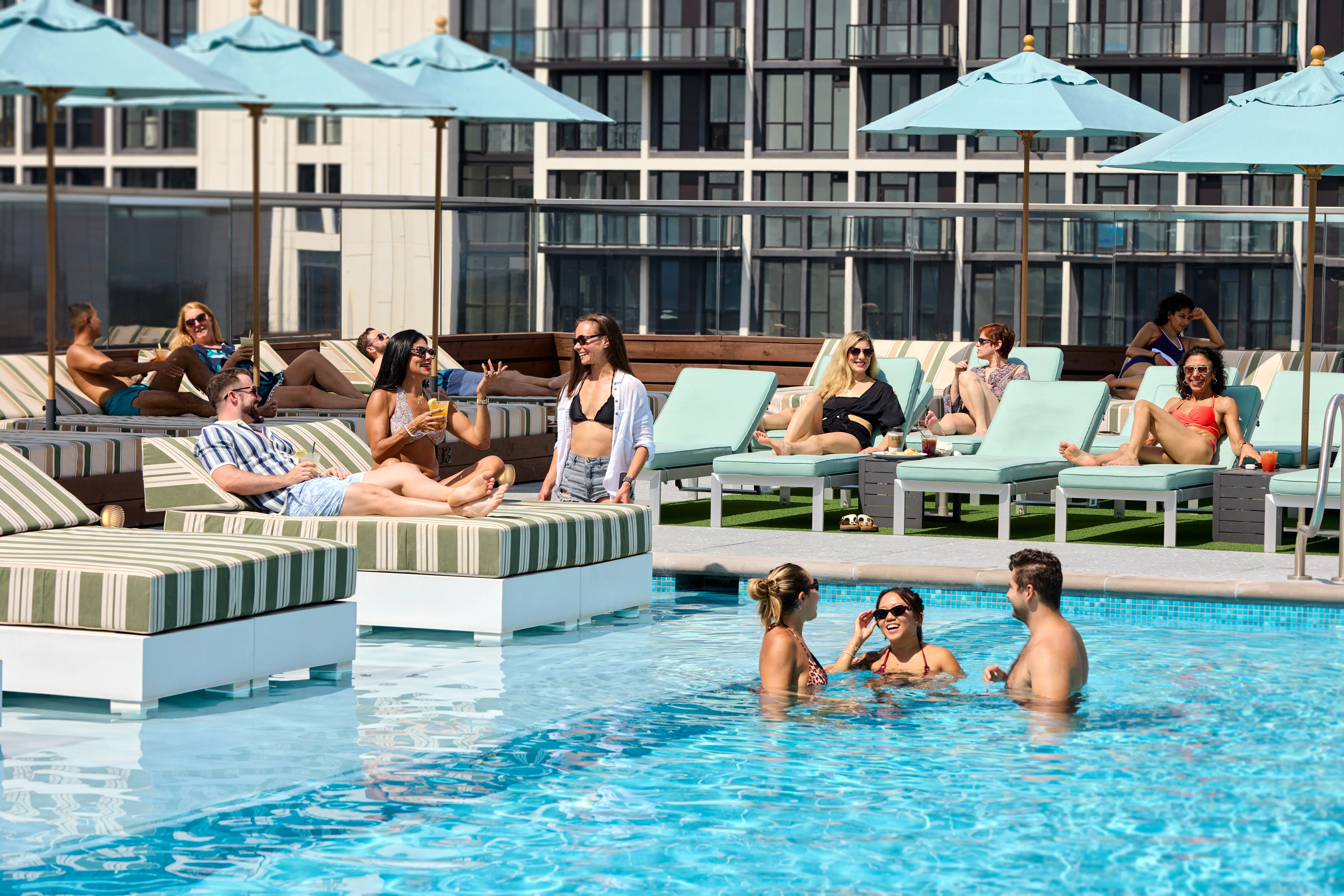 Penthouse Pool and Lounge, located on the 14th floor of VIDA Fitness in Reston Station, is open to members and guests. Lounge chairs and daybed rentals can be booked through the VIDA Fitness app. Conveniently near Wiehle-Reston East Metro Station, we validate parking for four hours on weekdays and seven hours on weekends (May – September).